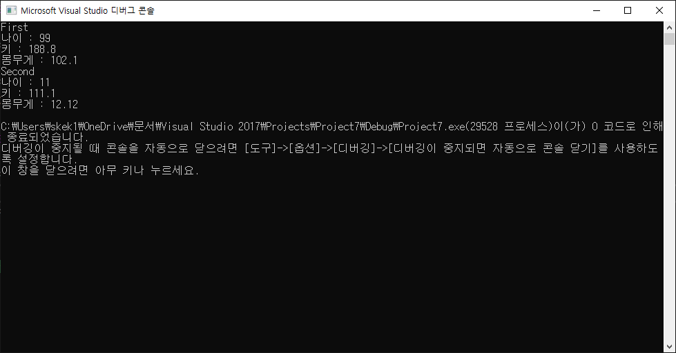 cout << "몸무게 : " << stUserInfo.fKg << endl;