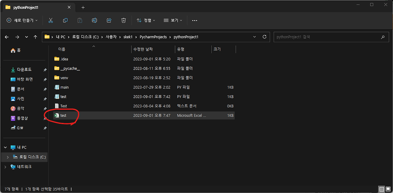 만든 test.csv를 프로젝트 폴더에 넣으면 된다.