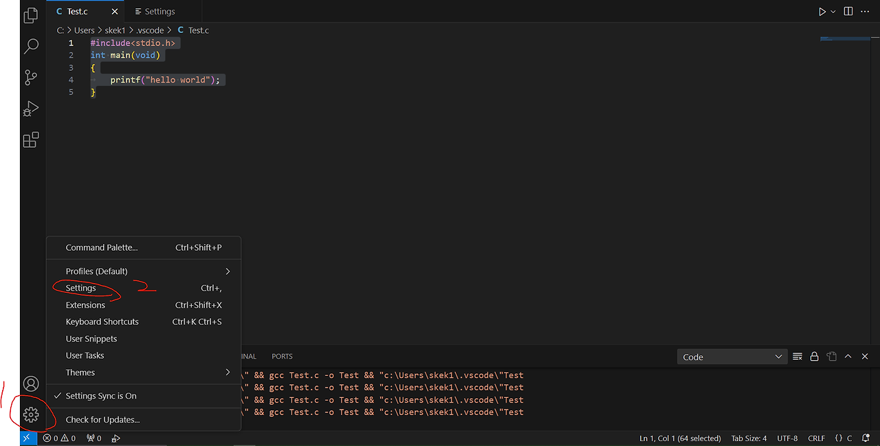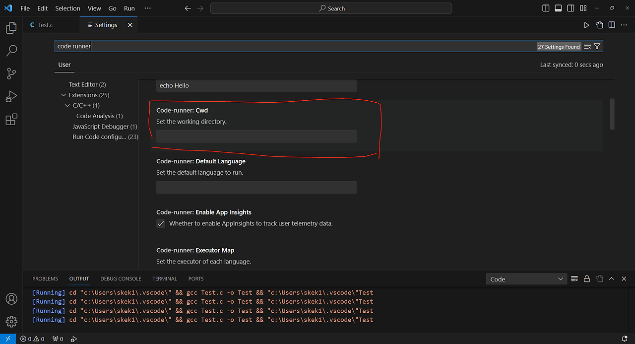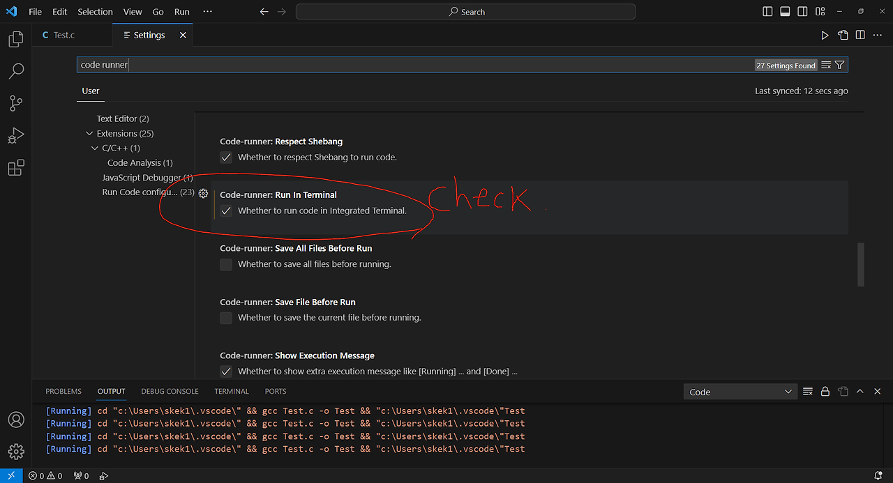 나는 C언어 코드 실행 시키니 발생했다. 해결 방법은 2가지가 있다.
