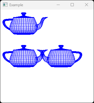 위에서 배운 glTranslatef(), glRoatef() 함수를 활용하면 여러 주전자를 그릴 수 있다.