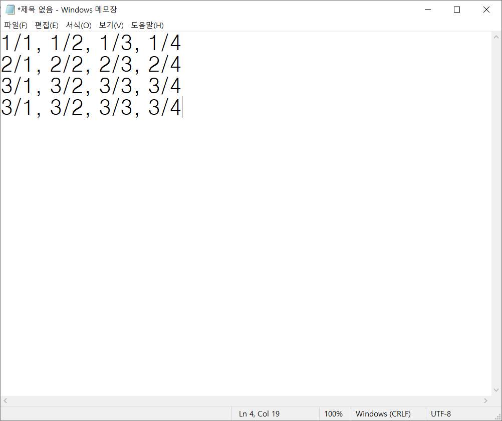 첫 번째 ['1/1', ' 1/2', ' 1/3', ' 1/4']