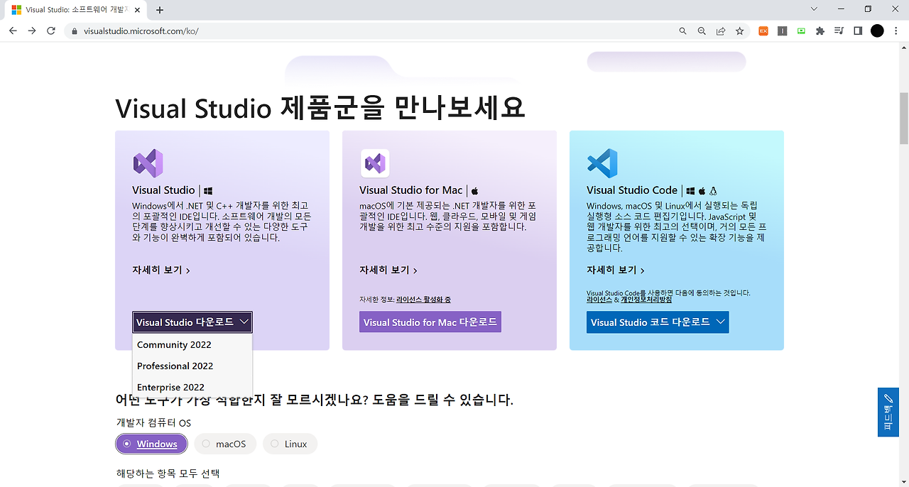Visual Studio 이전 다운로드 - 2019, 2017, 2015 및 이전 버전