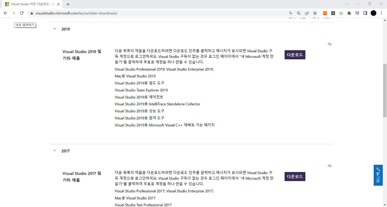 - 구 버전 설치(2019, 2017, 2015, 2013) 사이트
