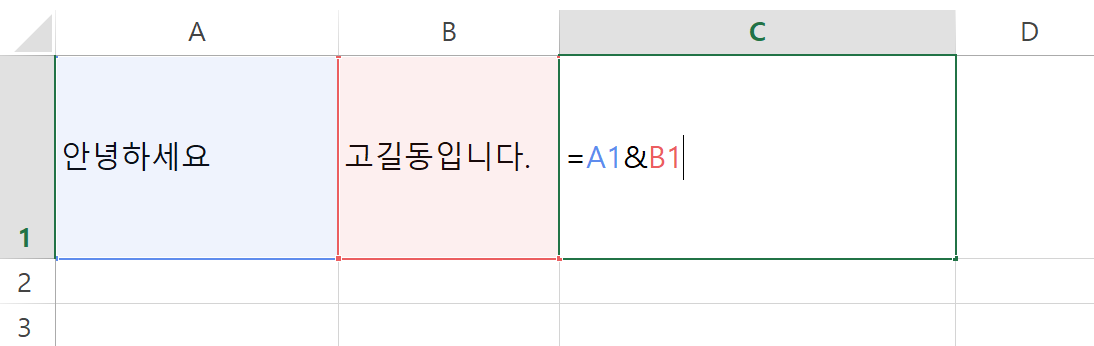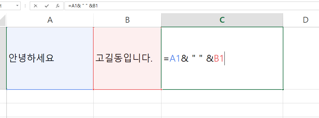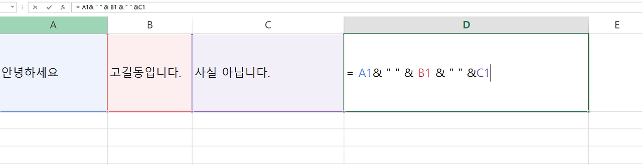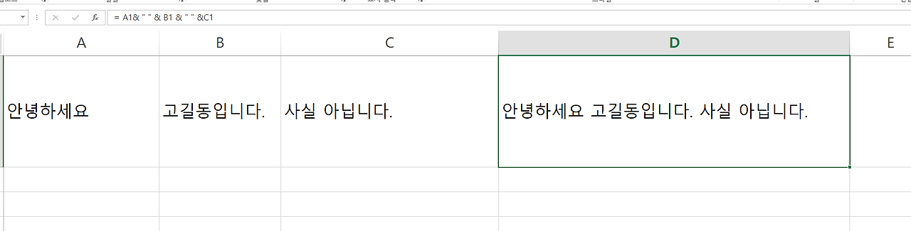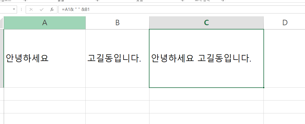 [ = A1& " " & B1 & " " & C1 ] 입력