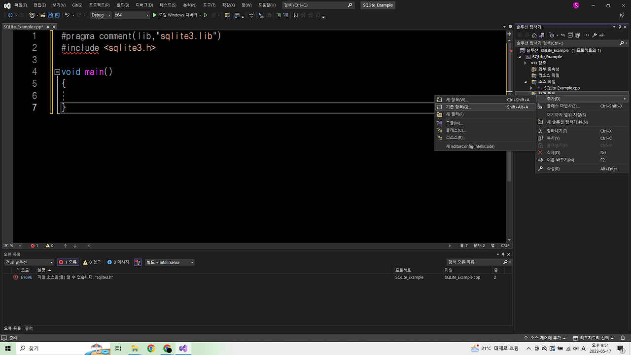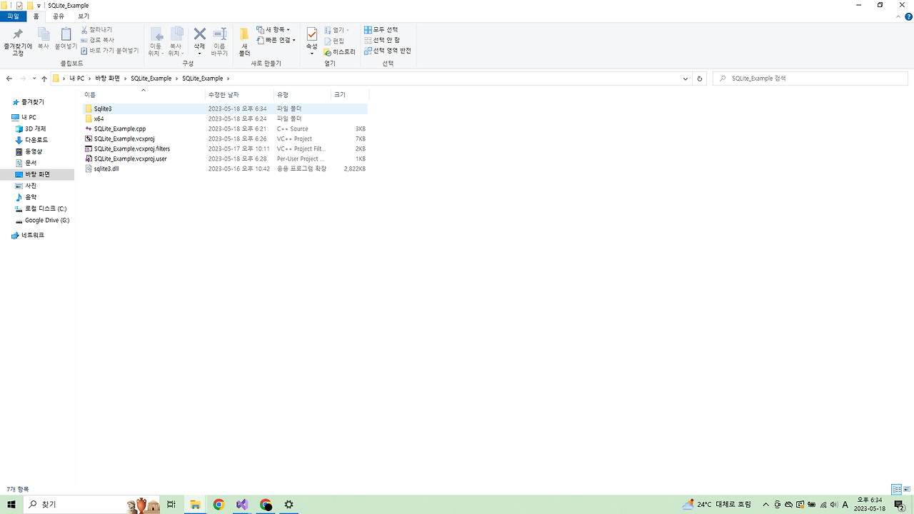 SQLite_Example 폴더에 들어왔으면 dll 파일을(sqlite3.dll) 넣어 준다.