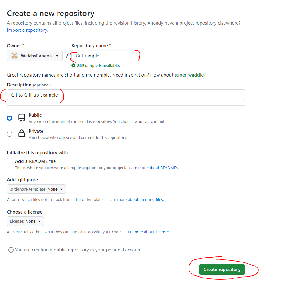 2. Repository name에 저장소 이름을 작성, Description 에 설명 작성 후 Create repository 클릭