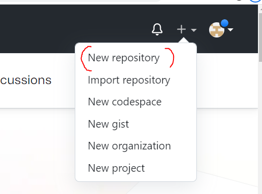 1. GitHub에 들어가서 프로필 -> New repository 클릭.