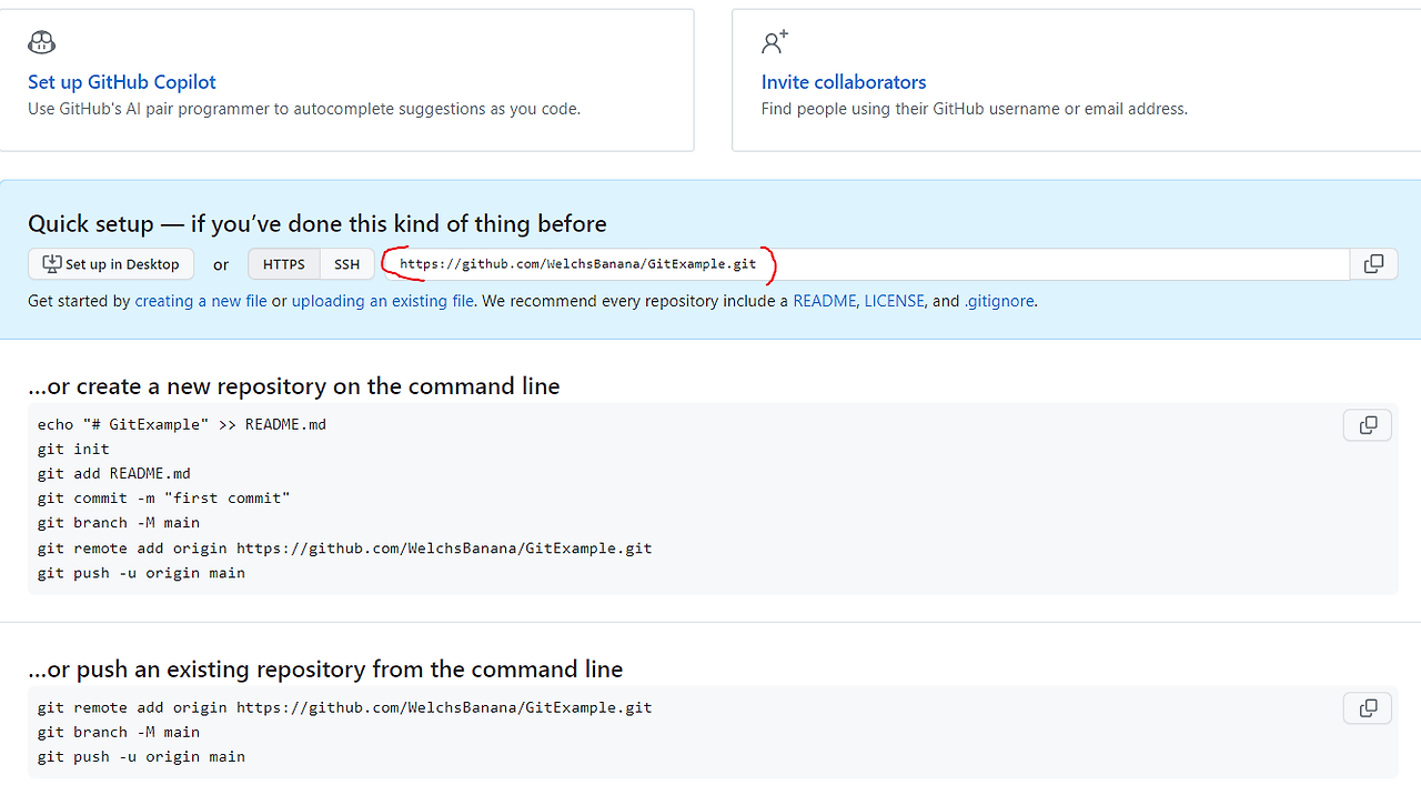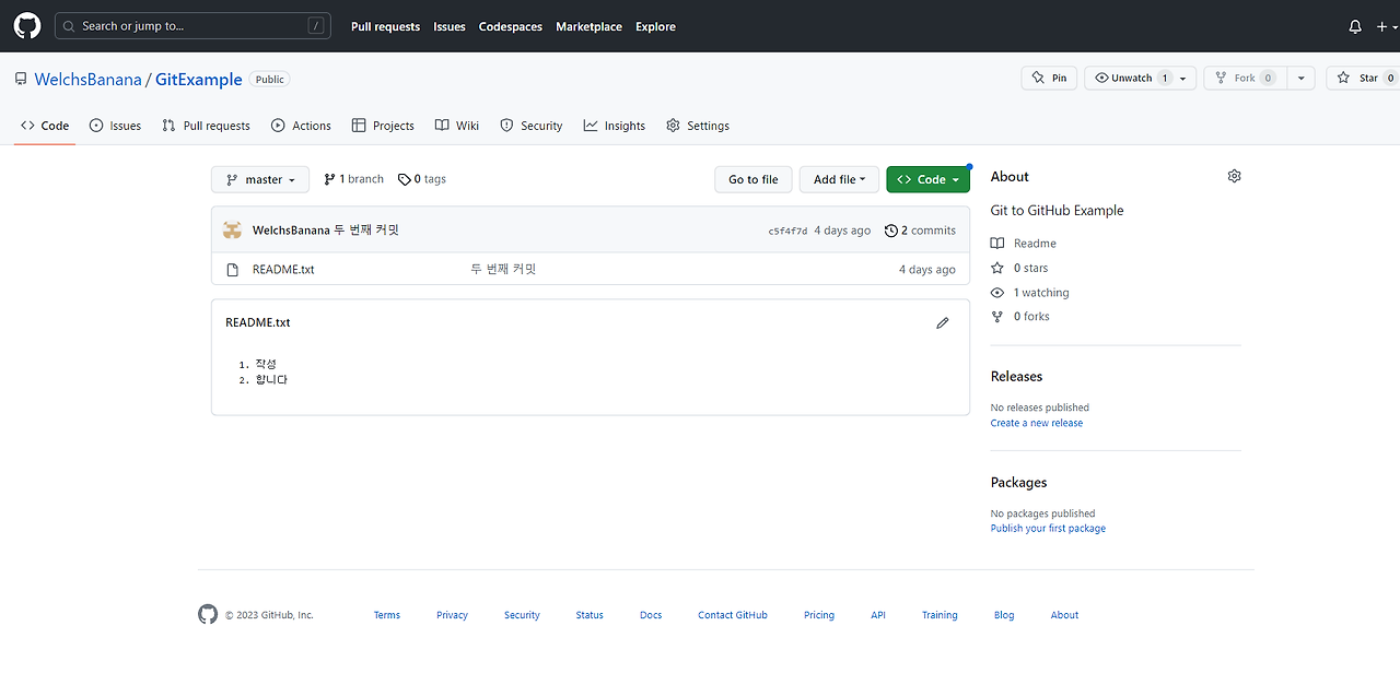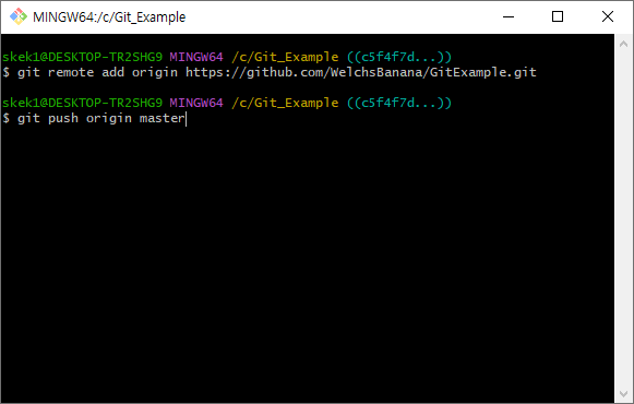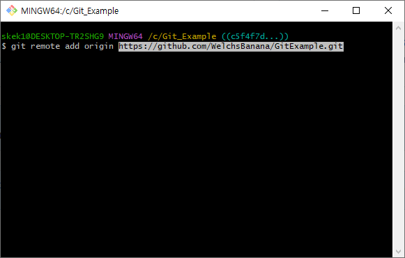 아래 https://github.com/WelchsBanana/GitExample.git 가 저장소의 주소다.