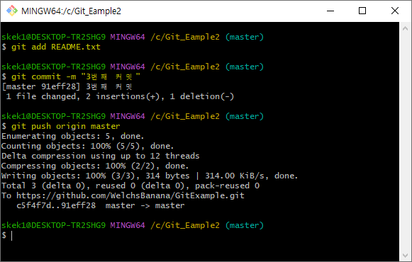 1. 로컬 저장소1(Git_Example), 로컬 저장소2(Git_Eample2) 총 2개를 만들었다.