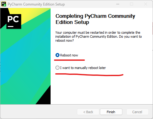 파이참은 컴퓨터 재시작을 해야 실행이 가능하다.